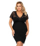 Decolteul și mânecile scurte sunt îmbogățite cu dantelă elegantă, oferind un aer sofisticat. Guma elastică sub bust oferă susținere discretă și conturează frumos linia bustului, fiind ideală pentru formele pline.