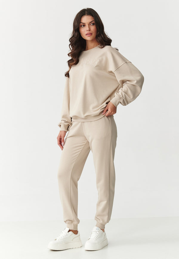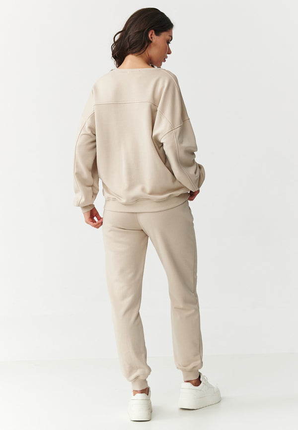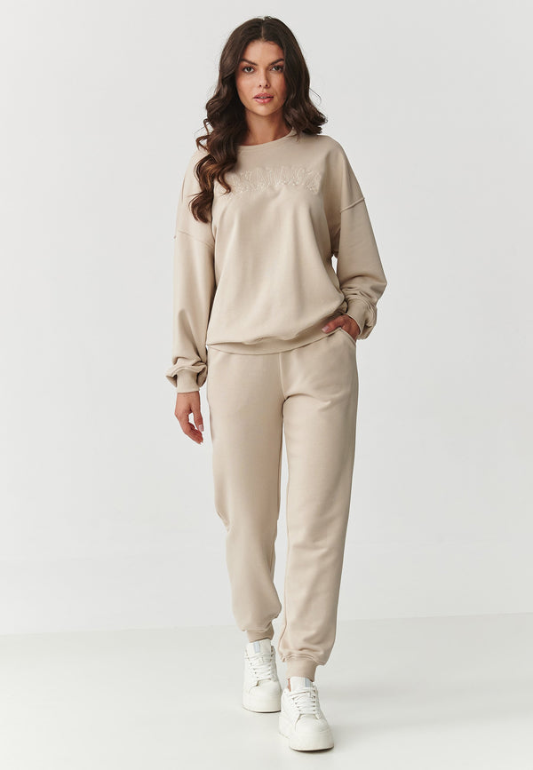 Compleu damă, bumbac, bluză și pantaloni cu manșete, bej - ISABELLA M889