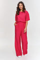 Un compleu elegant și versatil, alcătuit din bluză lejeră cu mânecă scurtă și pantaloni palazzo din material tip in, ideal pentru birou, evenimente elegante sau ieșiri de zi.