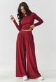 • Croială: bluză cu drapaj lateral și pantaloni largi