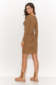 Obcisła sukienka mini z marszczeniami czekoladowa NU459
