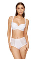 Sutienul buretat GORTEKS G-246 alb îmbină rafinamentul materialului jacard cu delicatețea dantelei florale pentru o susținere elegantă.