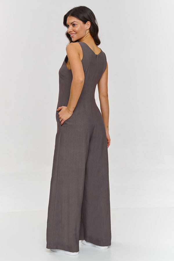 Salopetă damă MONICA - material lejer cu decolteu în V, gri maroniu