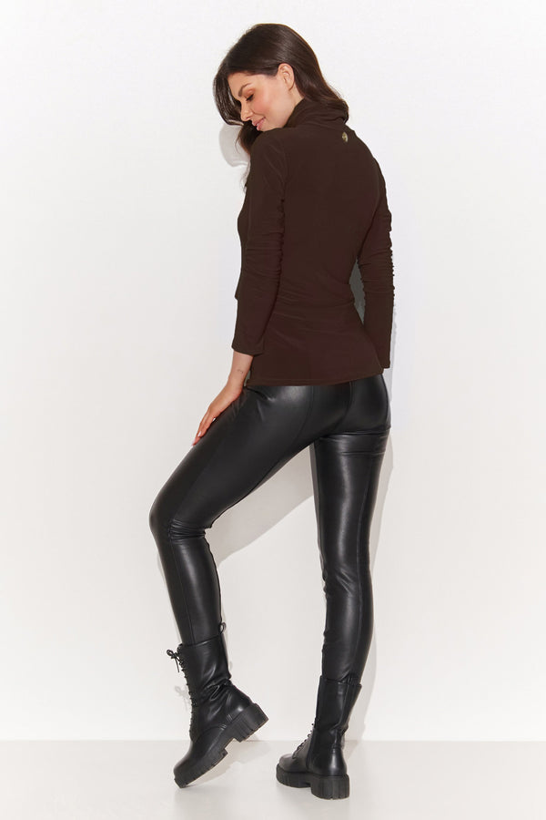 Klasyczna bluzka damska z golfem czekoladowa NU460