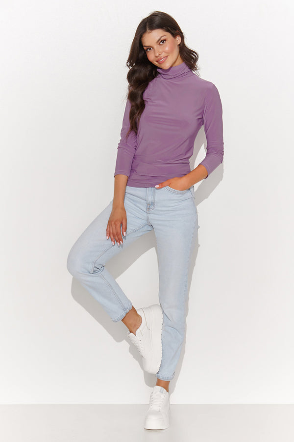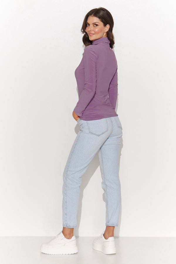 Bluză damă, viscoză elastică, guler înalt, mov lila - CLARA NU460