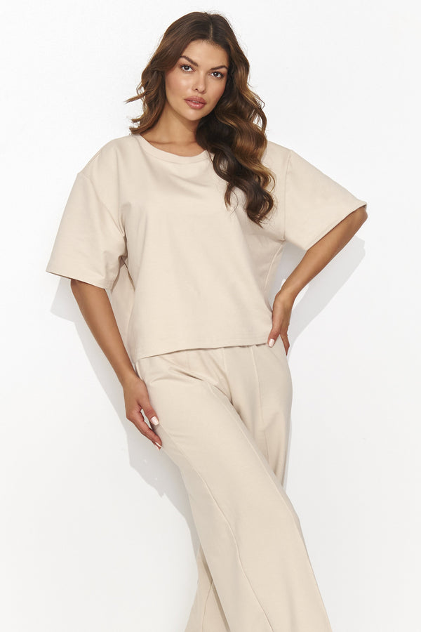 Compleu damă ALINA - tricou cu spate decupat și pantaloni palazzo în bej deschis