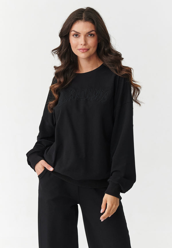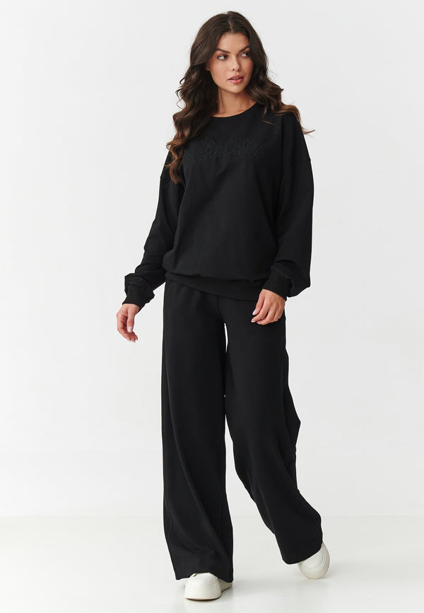 Compleu damă, bumbac, pantaloni oversize, negru - AMELIA M890