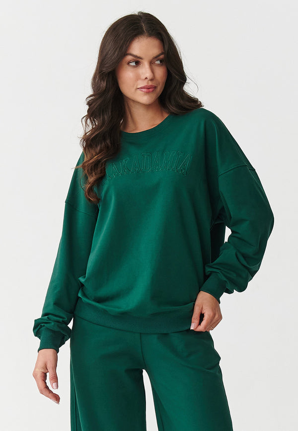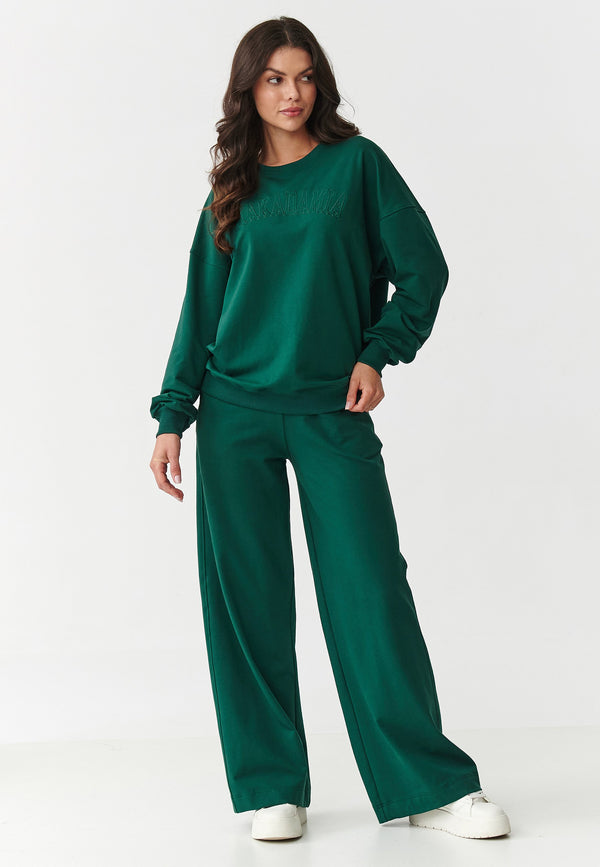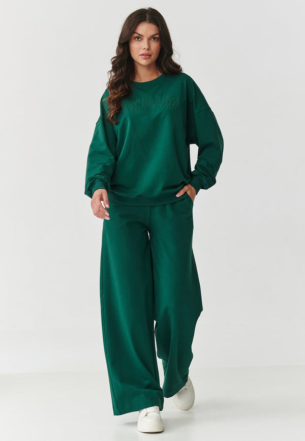Compleu damă, bumbac, pantaloni oversize, verde smarald - AMELIA M890