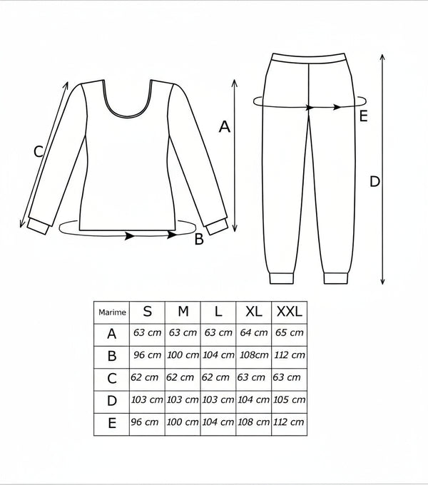 Bluza cu mânecă lungă și imprimeu de iarnă se asortează perfect cu pantalonii lungi în același model, oferind un look complet și festiv. Manșetele elastice asigură o fixare confortabilă și o protecție termică optimă în nopțile reci.